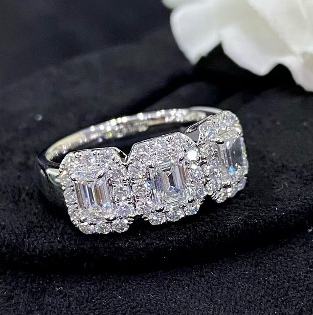 Ring:1.6ct VSクラリティ Hカラー目安 K18WG 商品番号16900 エメラルドカットの直線美と 繊細な取り巻きが美しいです スタイリッシュで ラグジュアリーなダイヤモンド リングです お揃いのピアスがあります˚✧₊⁎ セット割 お問い合わせください