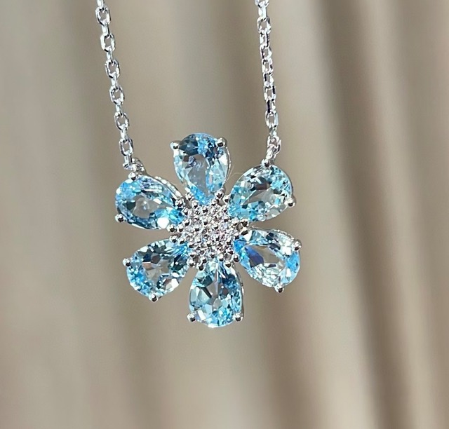 【フラワー・アクア】3.7ctアクアマリンネックレス