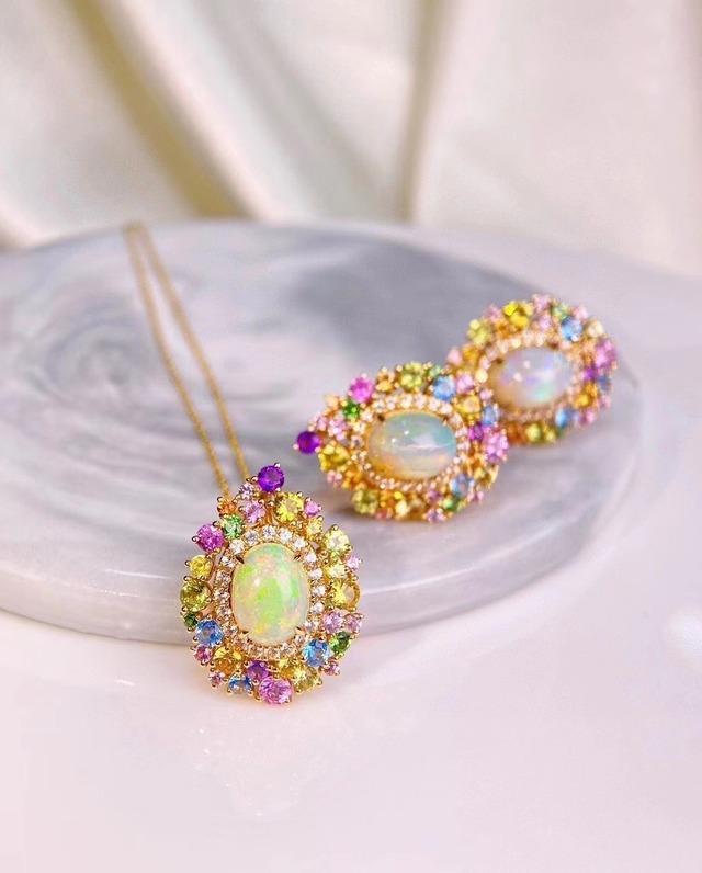 Instagramで人気の商品が オンラインショップに 初登場です 遊色をもつ華やかなオパールの世界を 表現した作品です˚✧₊⁎ プリンセスのような愛らしさ、華やかさは 他の宝石では表すことができない 特別なものです 遊色の神秘的な色合いに サフャイアがさらに彩りを添えて とても美しい仕上がりになっています オパールは上質なものだけを 厳選してお届けしております 【リングはネックレスとの2way】 リングとアームは取り外しができます ネックレスとしても お使いいただけます チェーンをご希望の方は、 別途ご案内いたします ring & necklace 2ways オパール 2.35ct カラーサファイア0.591ct お揃いのピアスもご用意してます セットでお使いいただき よりオパールの世界観を お楽しみください˚✧₊⁎ ピアス オパール 3.65ct カラーサファイア 1.18ct 390000円 商品番号12900