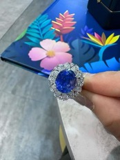 【NEW】6ct非加熱コーンフラワーサファイアリング