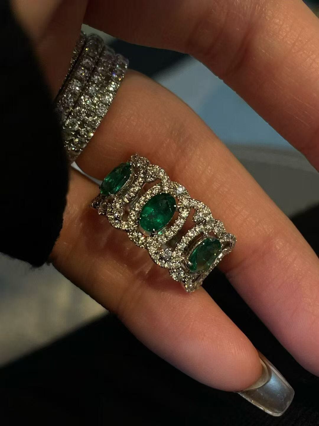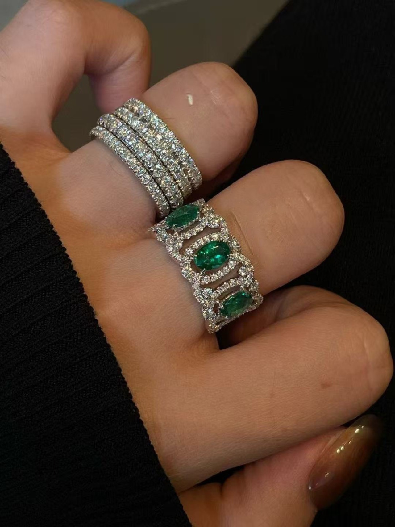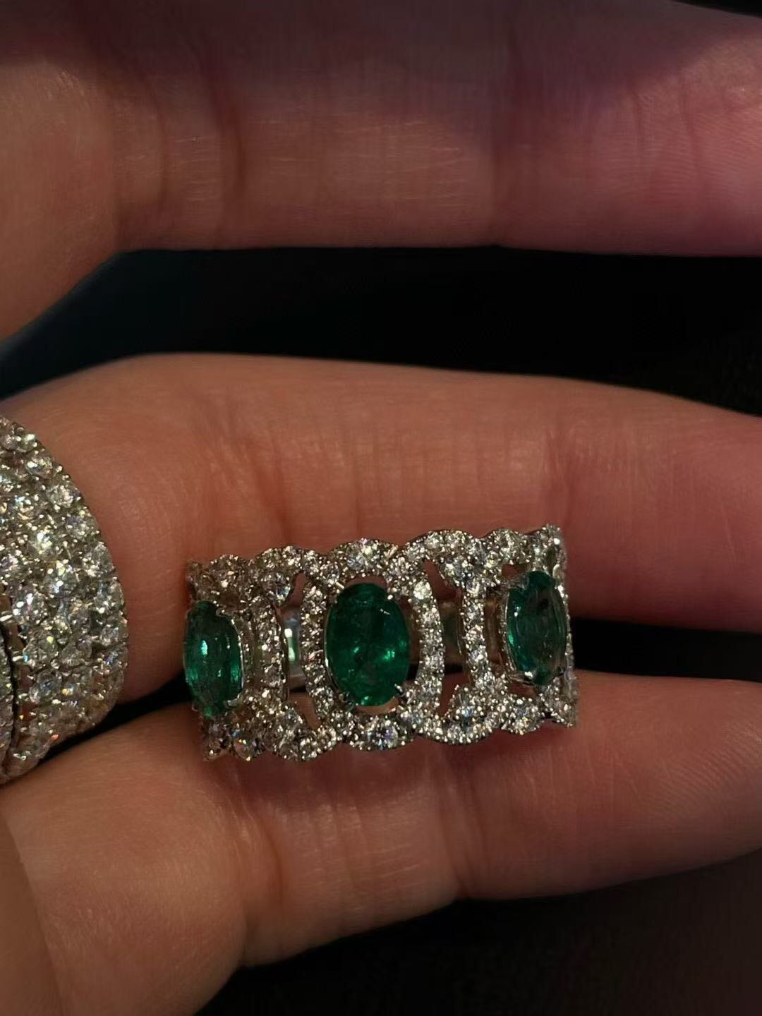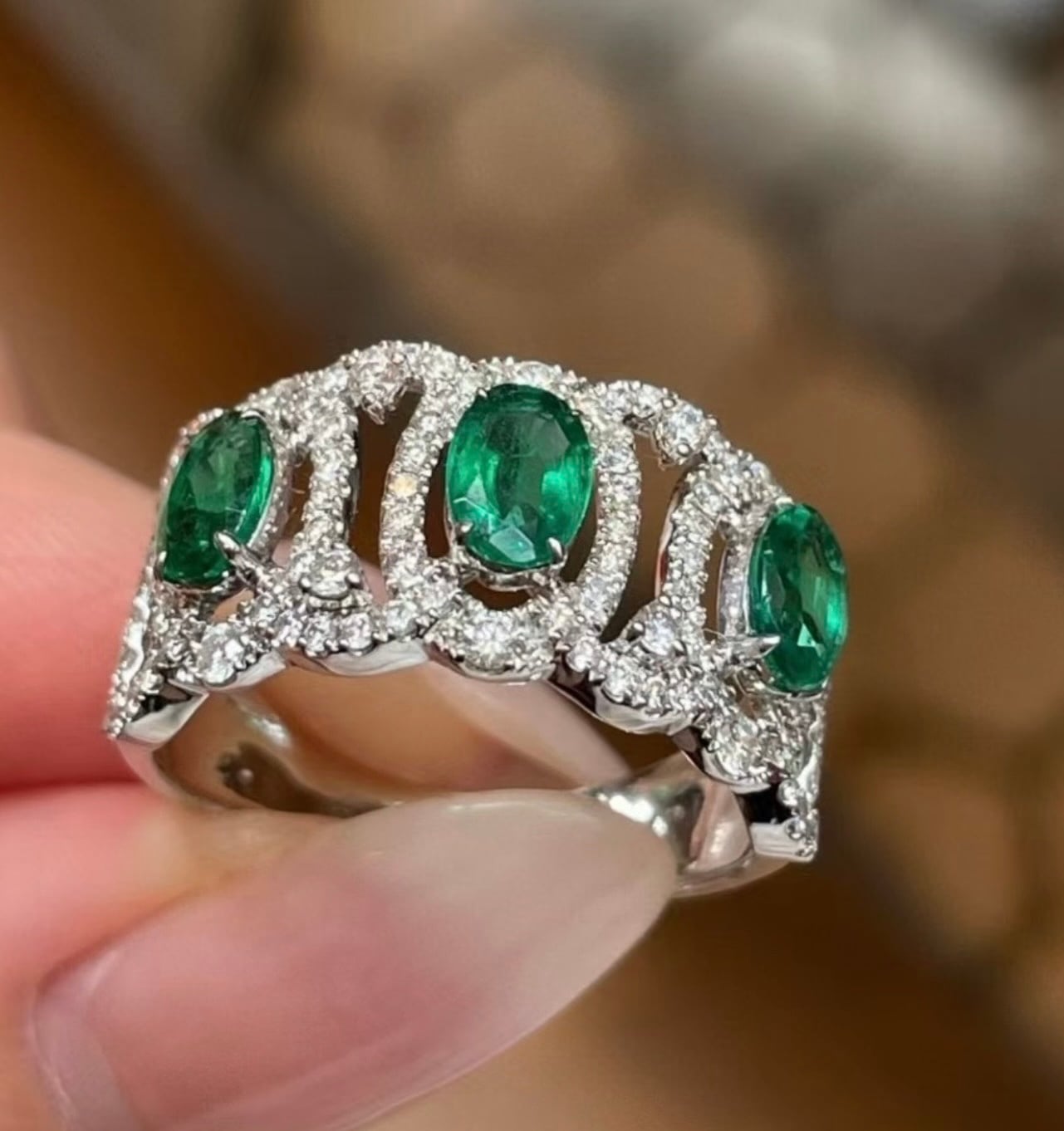 連なるオーバルシェイプのエメラルドが、