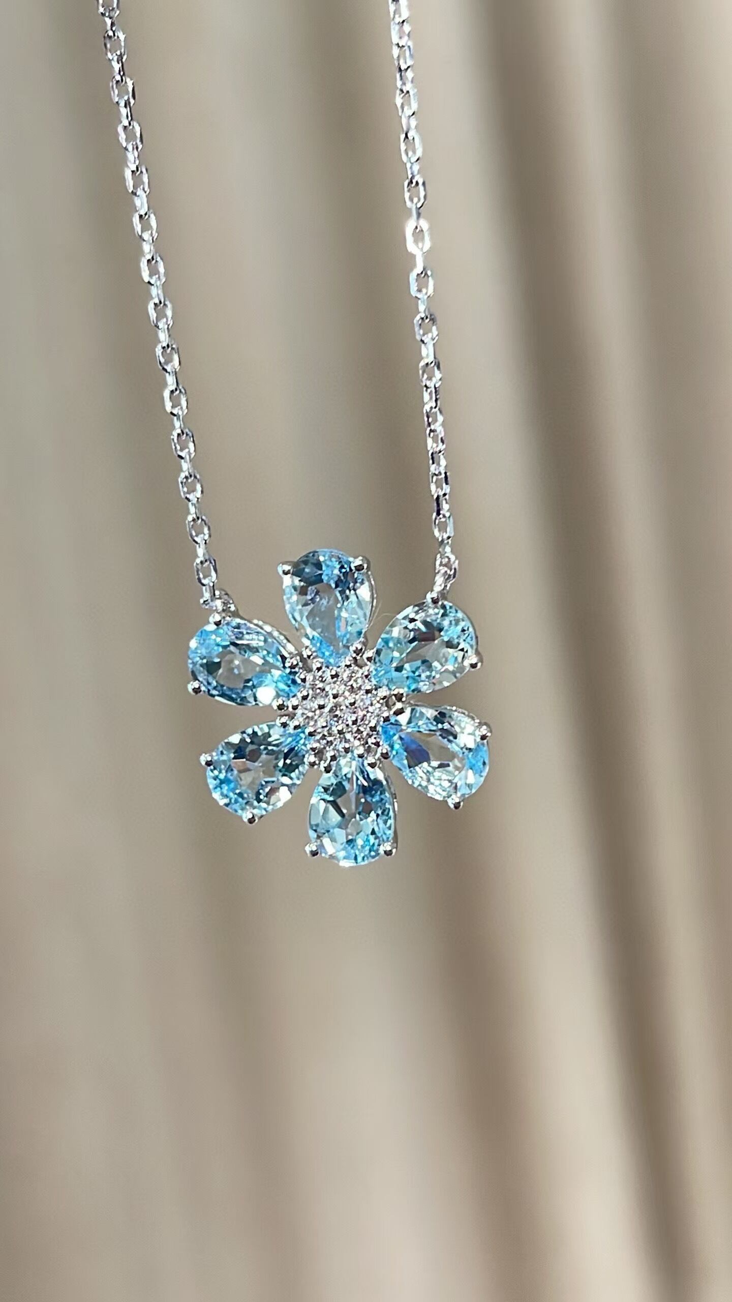 【フラワー・アクア】3.7ctアクアマリンネックレス