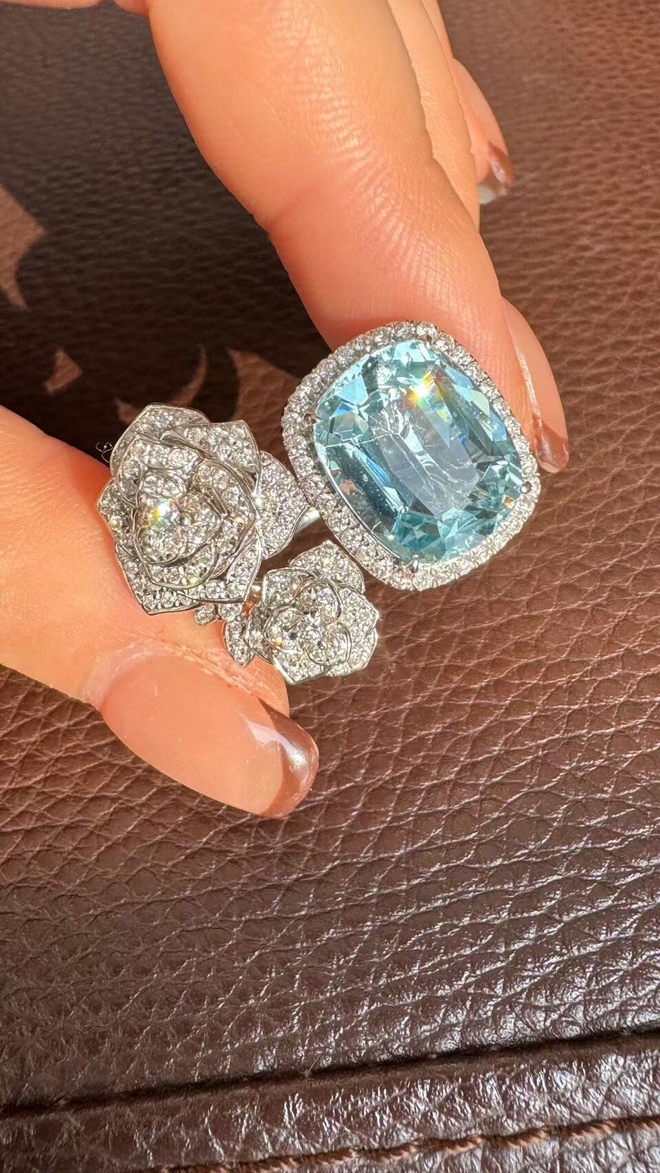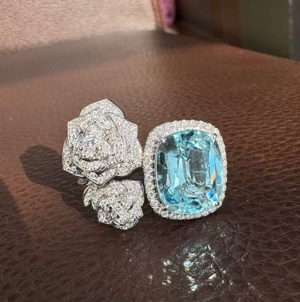アクアマリンに薔薇が寄り添う