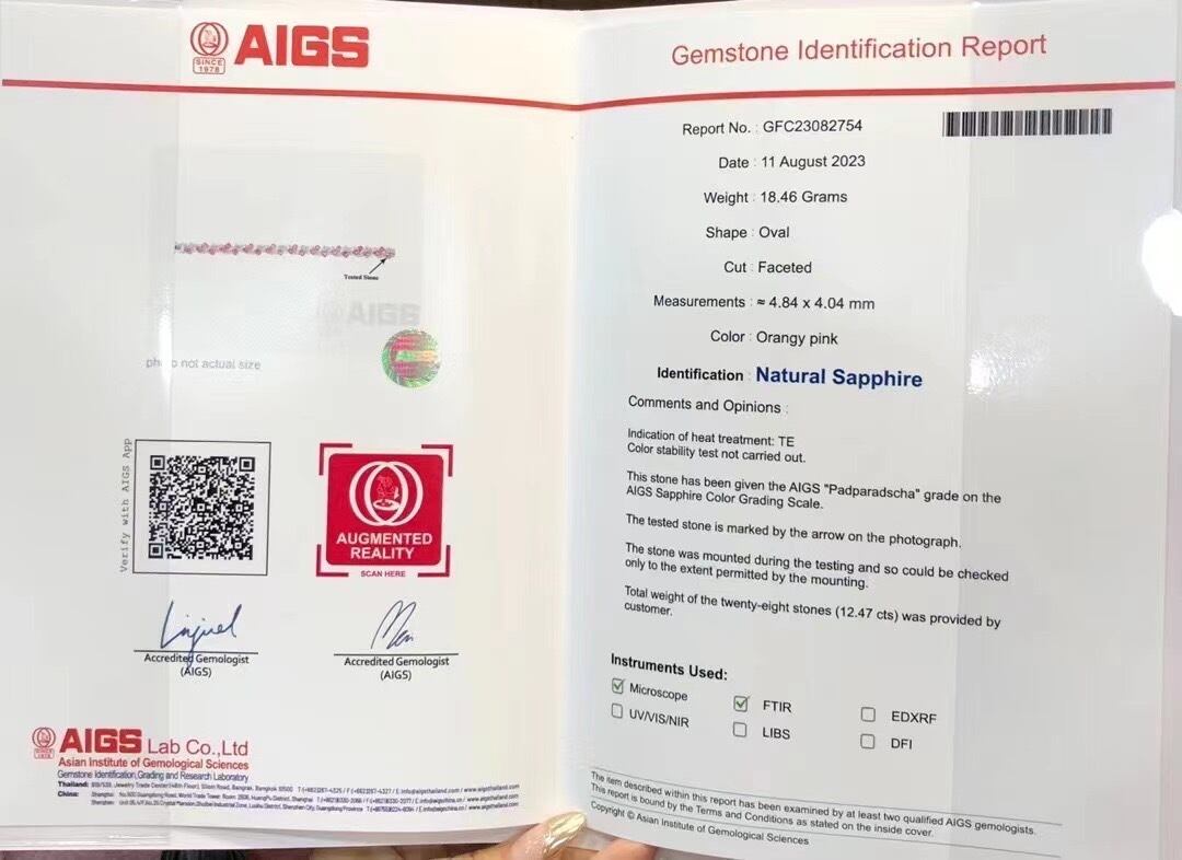 【新着】AIGS鑑定12.47ctパパラチアサファイアブレスレット